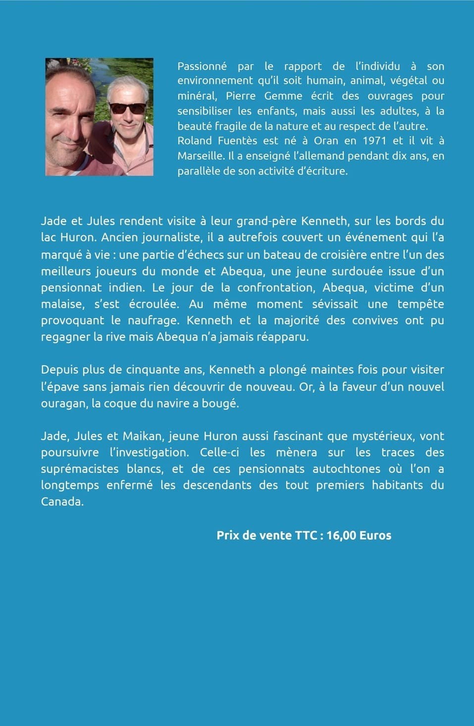 Jade et Jules vivent à Marseille et sont passionnés de plongée. Cet été, ils rendent visite à leur grand-père Kenneth, sur les bords du lac Huron. Ancien journaliste, il a autrefois couvert un événement qui l’a marqué à vie : une partie d’échecs organisée en grande pompe sur un bateau de croisière opposant l’un des meilleurs joueurs du monde et Abequa, une jeune surdouée issue d’un pensionnat indien. Le jour de la confrontation, Abequa, victime d’un malaise, s’est écroulée. Au même moment sévissait une tempête. Le navire a coulé, empêchant toute enquête sur les causes de cette tentative de crime. Kenneth et la majorité des convives ont pu regagner la rive mais Abequa n’a jamais réapparu.